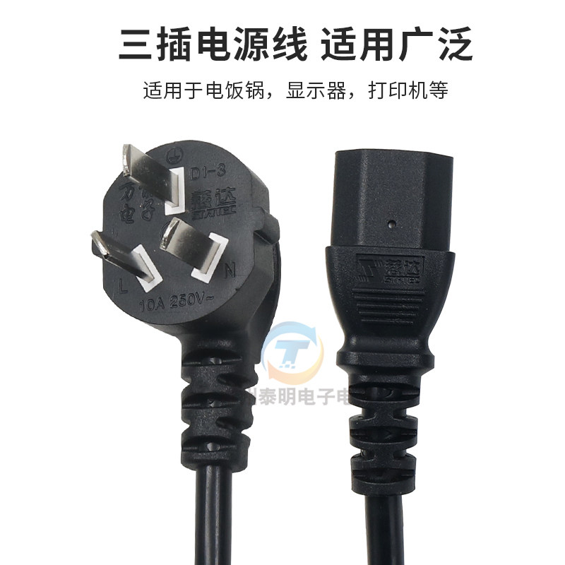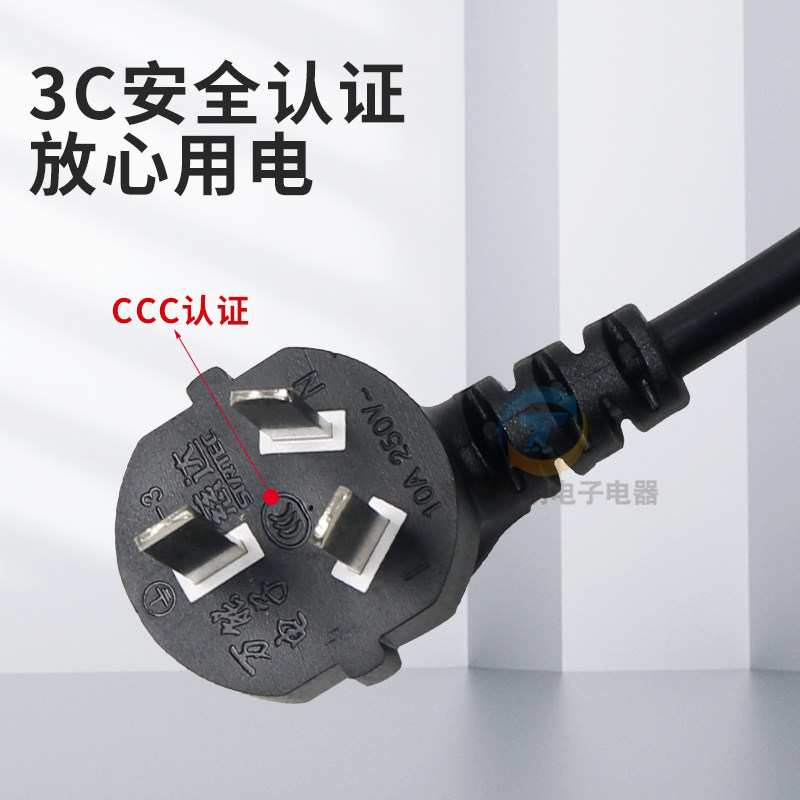 国标电脑电源线三芯插头主机显示器投影仪电饭煲三孔通用延长线