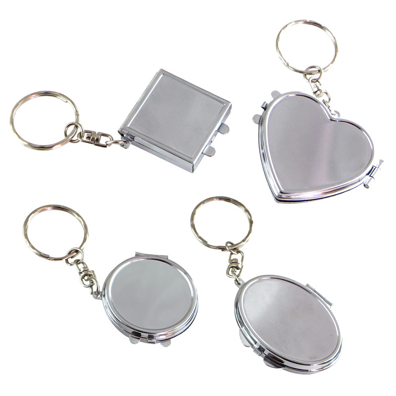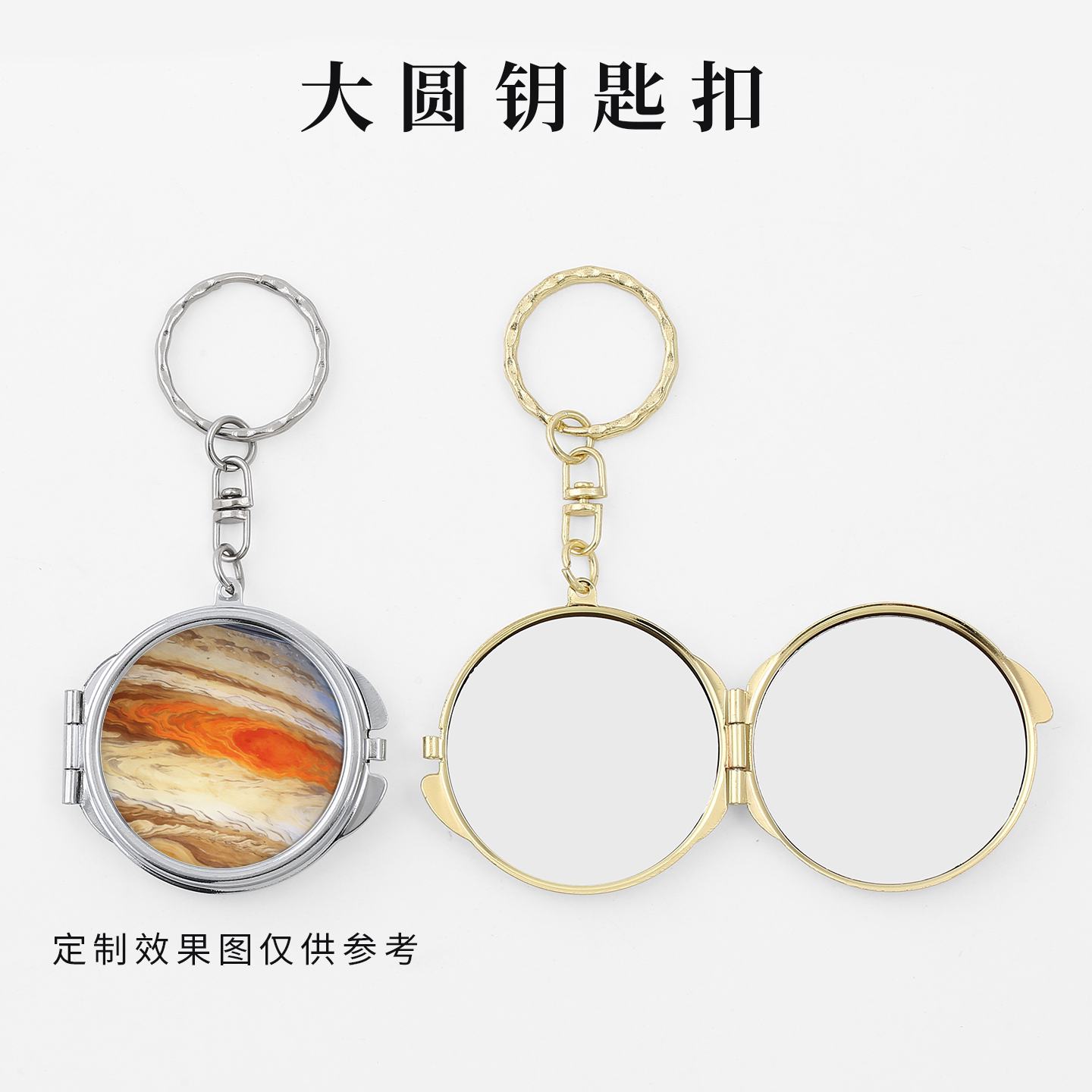迷你小镜子钥匙扣挂件手工金属小镜子双面便携化妆小镜子定制刻字