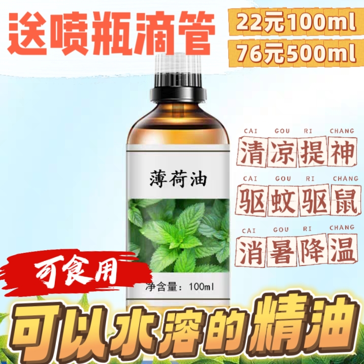 神农天然薄荷精油水溶性提神醒脑单方精油头发按摩防蚊虫驱鼠香薰