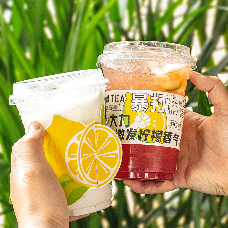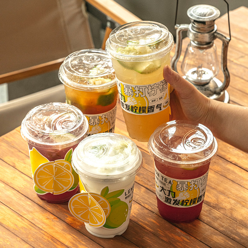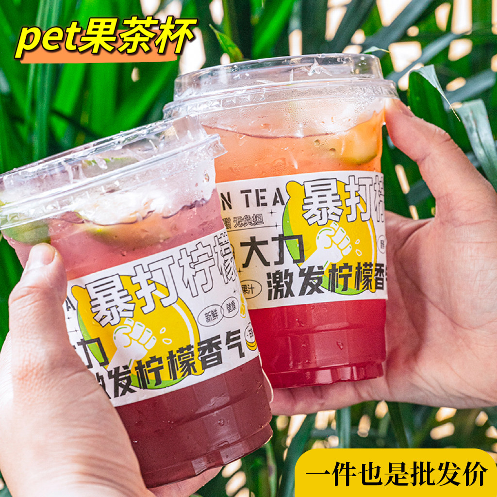 千变98口径奶茶杯子一次性PET冷饮杯透明带盖咖啡饮料杯加厚塑杯