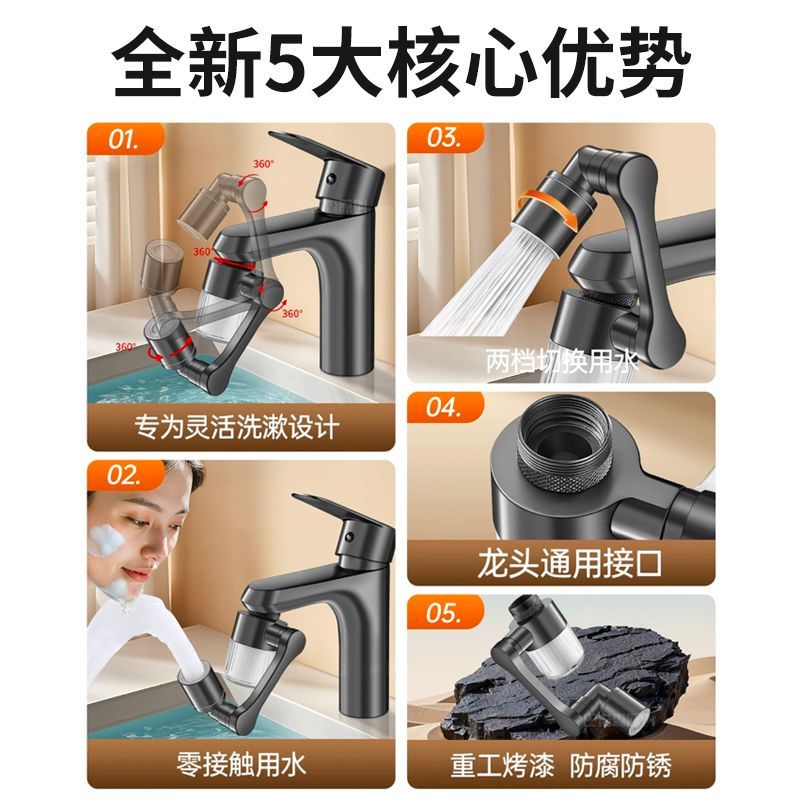 潮洁龙头出水嘴万能接头起泡器浴室脸盆万向旋转延伸机械臂通用