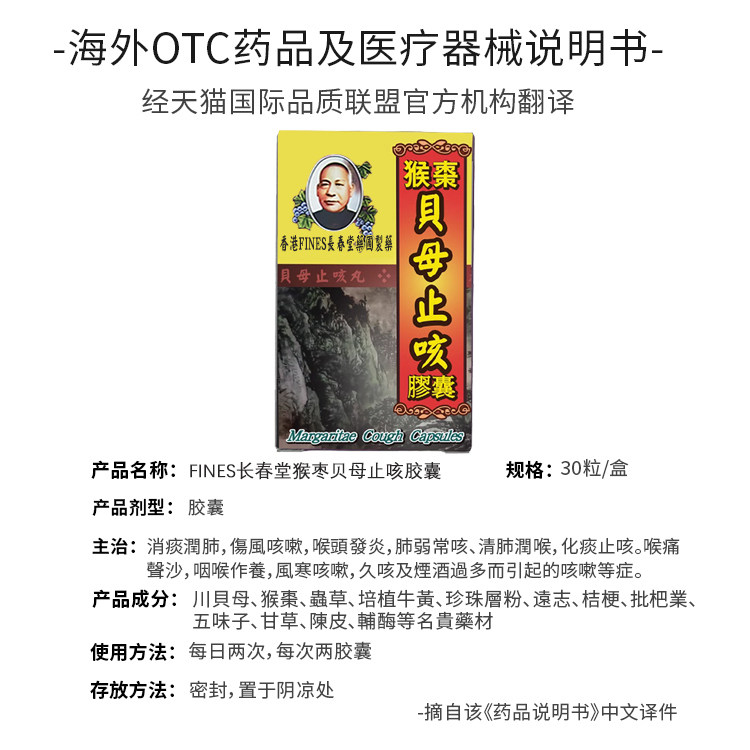 香港进口长春堂猴枣贝母止咳胶囊清痰止咳常咳喉咙痛发炎非糖浆