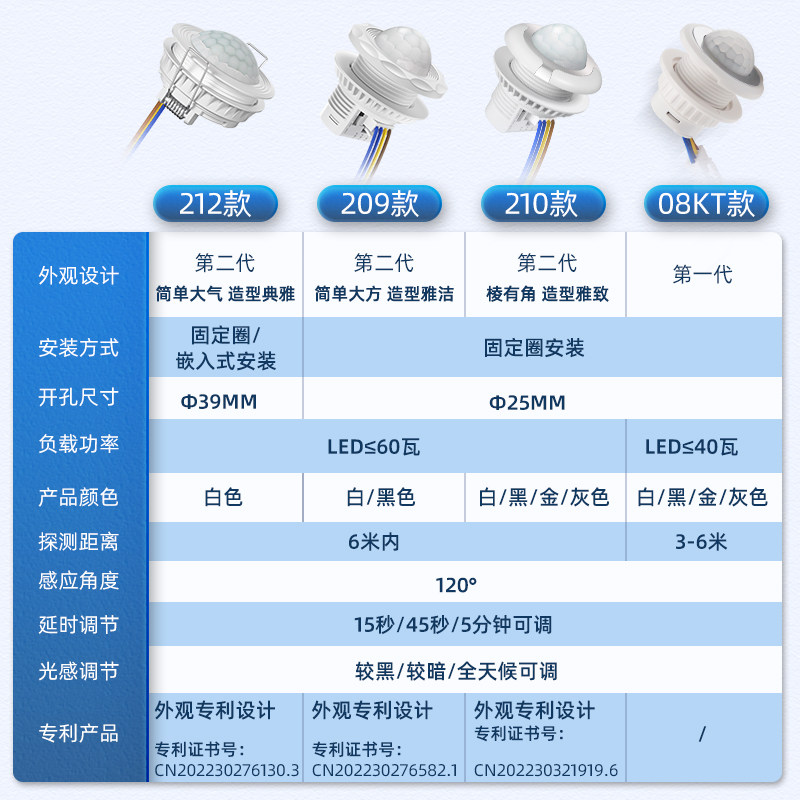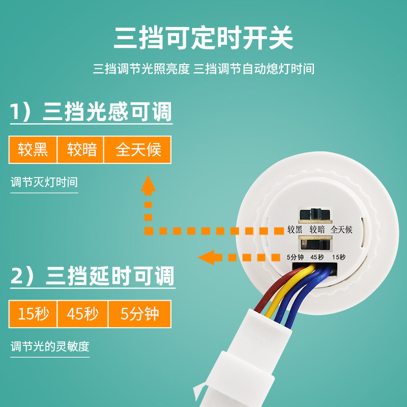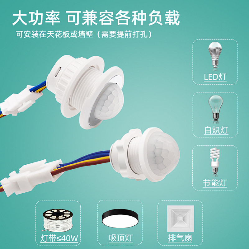 红外线人体感应器开关220v延时光控开关可调小头模块嵌暗装吸顶式
