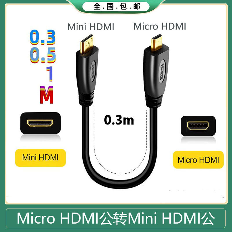 高清micro hdmi转mini HDMI线树莓派主机副屏微型迷你视频转接线