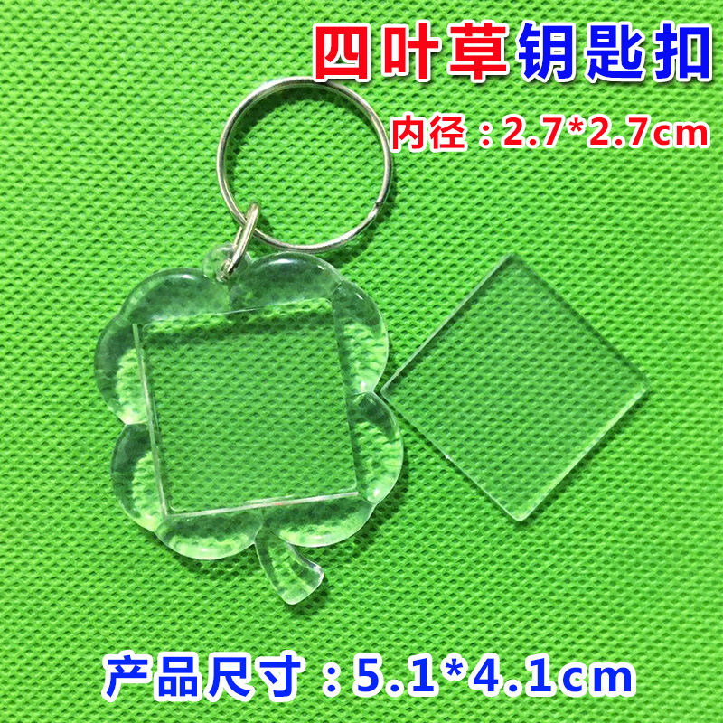 菱形钥匙扣核酸贴纸挂件二维码空白塑料亚克力透明相框照片四叶草
