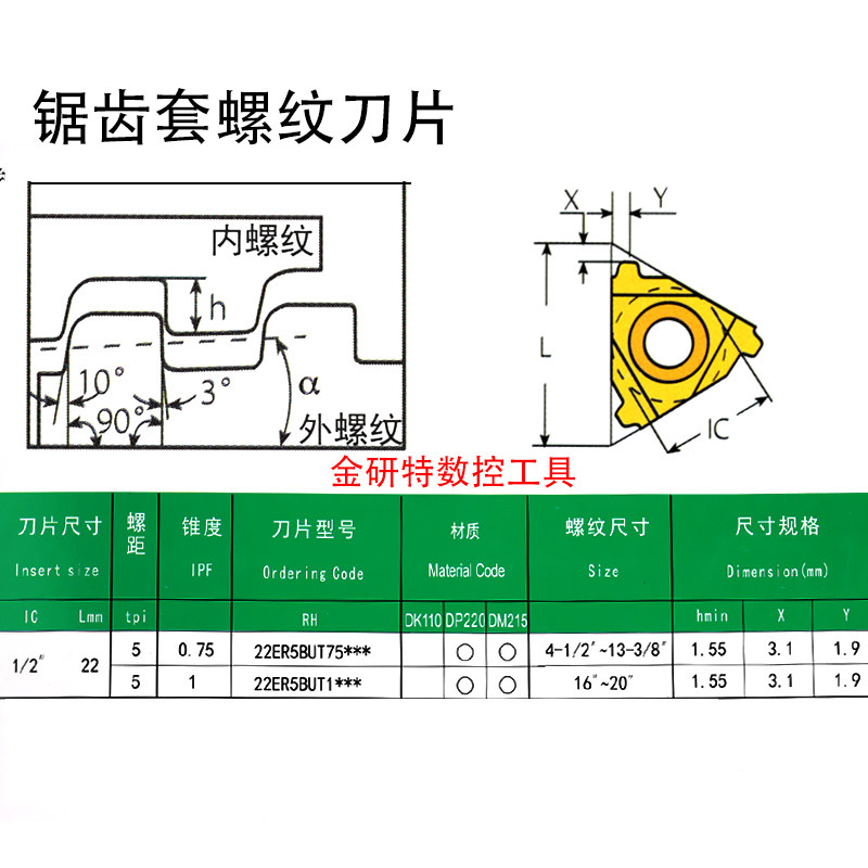 梯形螺纹刀片偏梯形地质石油管勘探钻杆三角形API锯齿t型22ER5BUT