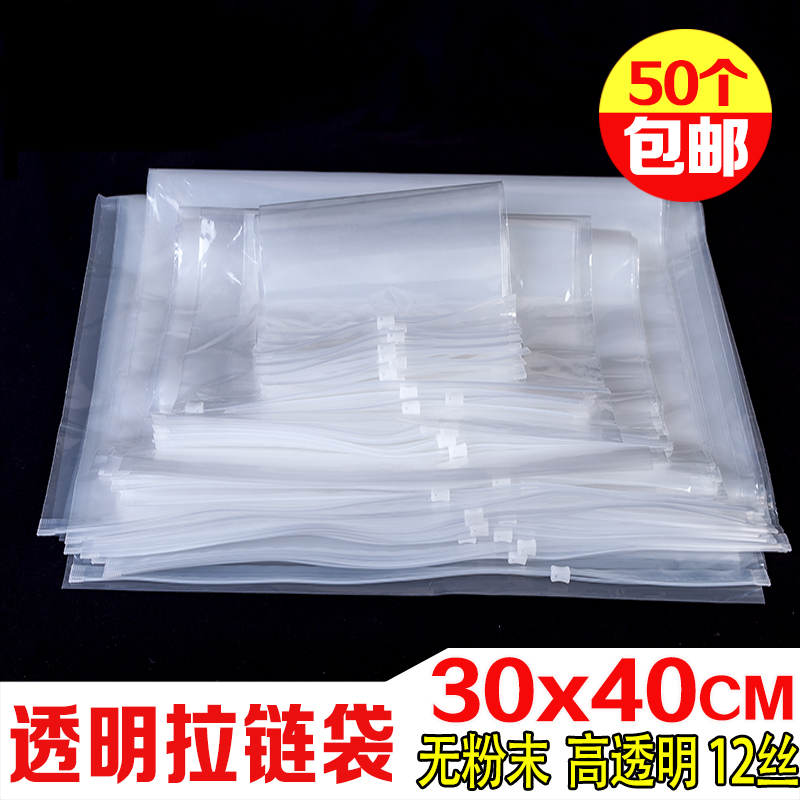加厚服装拉链袋衣服大衣衬杉夹链包装塑料透明自封收纳袋子30*40