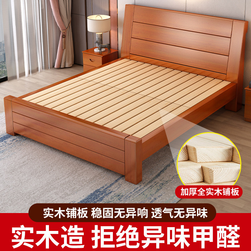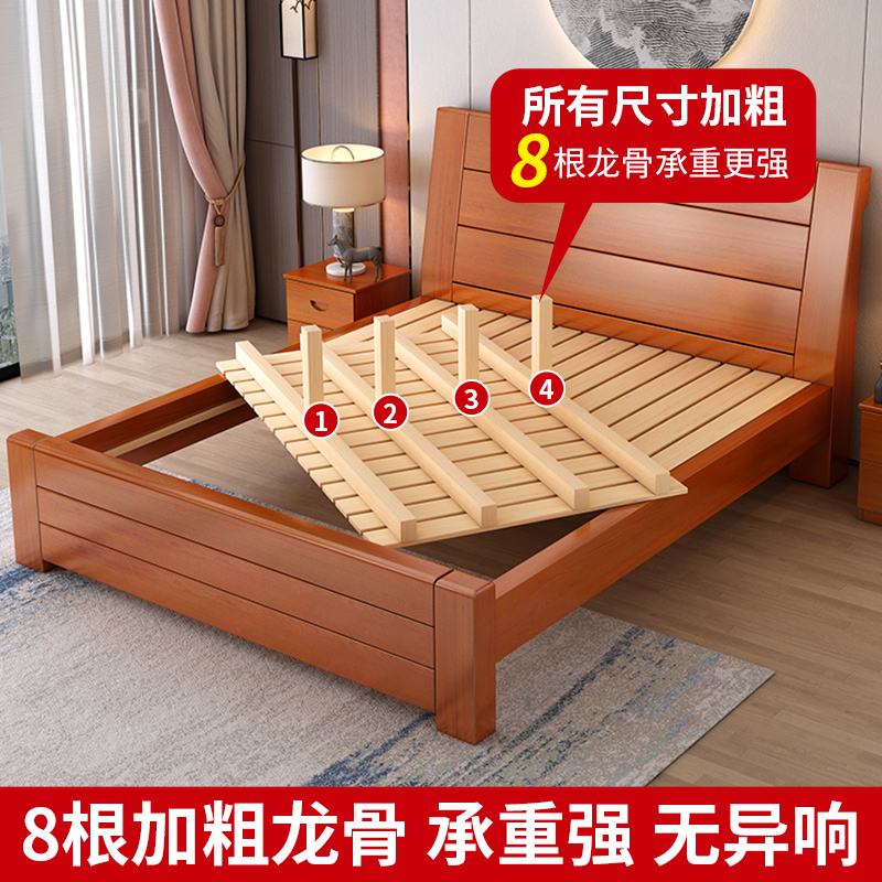 中式实木床1.8米双人床主卧经济型简约1.5米单人床家用1.2m加厚床