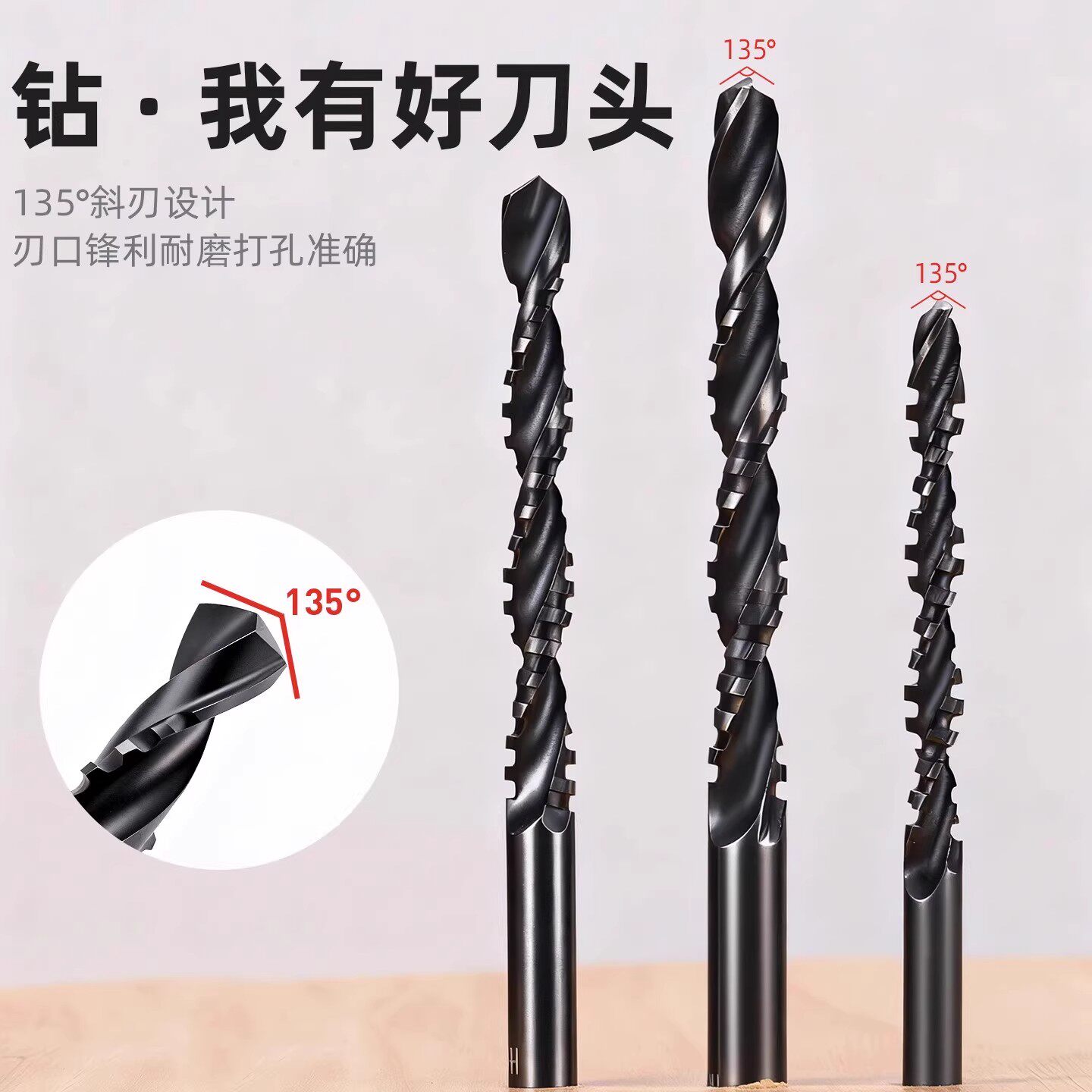 锯齿麻花钻头套装高硬度钢板打孔木工拉花专用圆柄加长锯手电转头