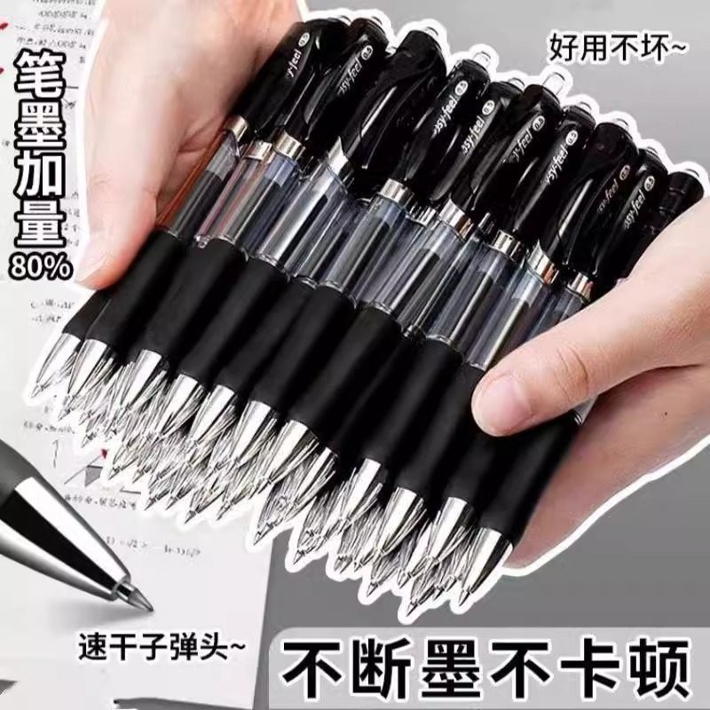按动中性笔0.5mm笔芯圆珠笔签字笔碳素笔黑红蓝学生学习办公用品