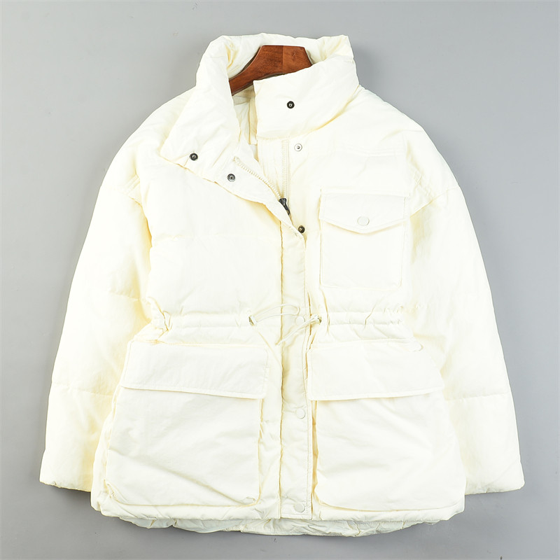 精品高充绒女士立领羽绒服L85594宽松面包服抽绳收高腰白鸭绒外套