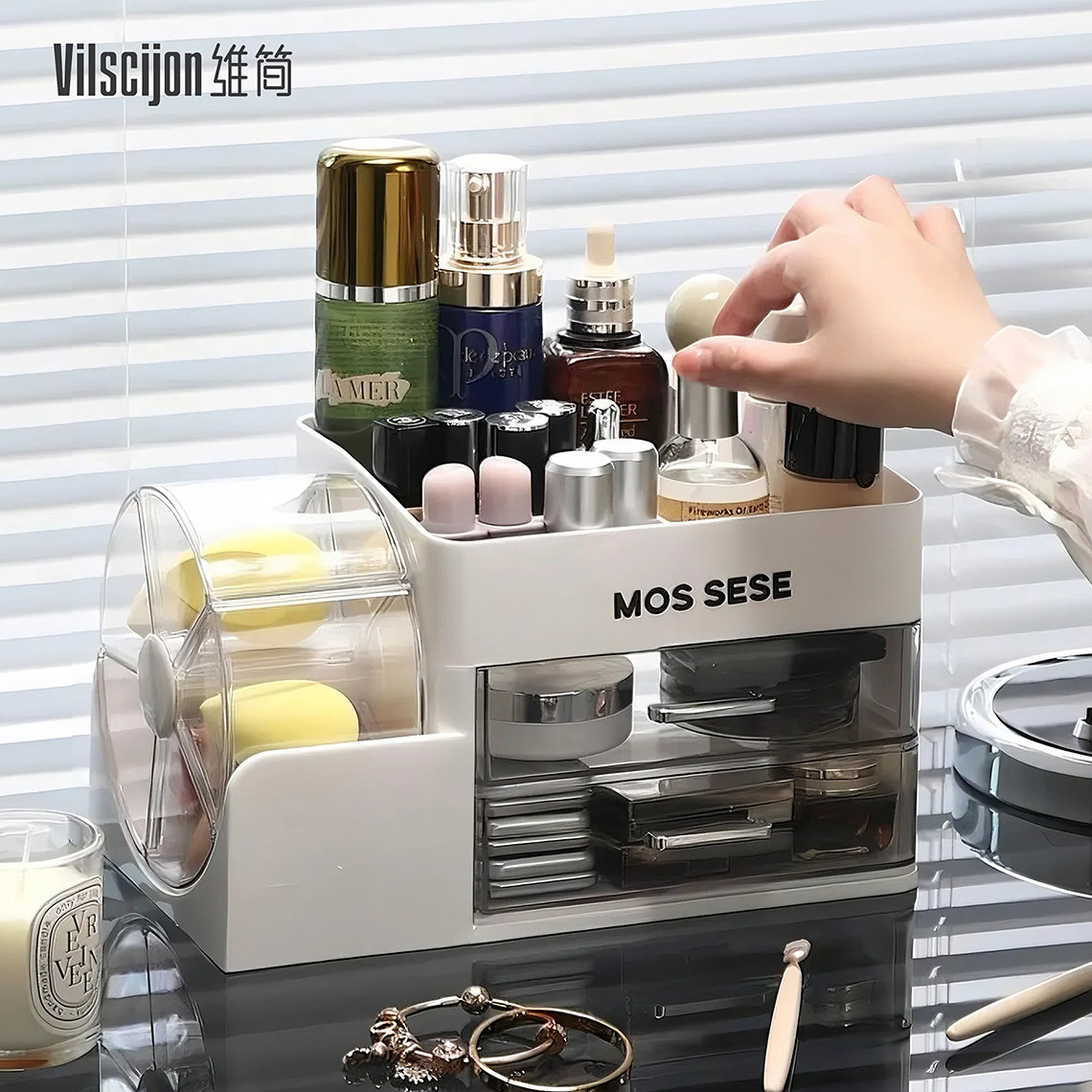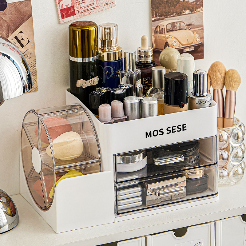 化妆品收纳盒桌面粉扑美妆蛋气垫口红整理盒子梳妆台护肤品置物架