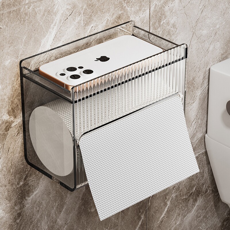 卫生间纸巾盒壁挂式免打孔防水卫生纸盒子家用透明厕所抽纸盒轻奢