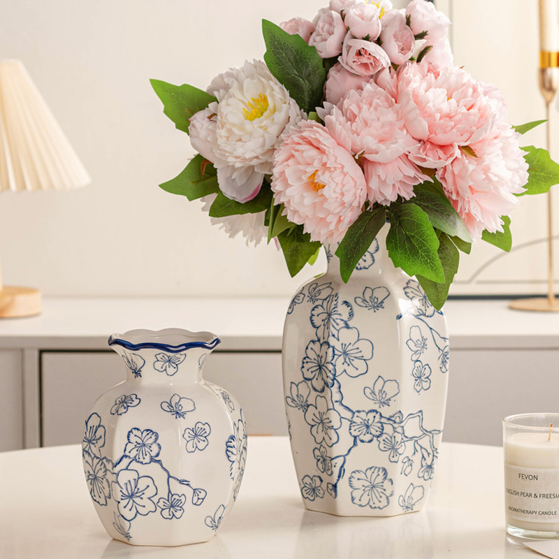 高级摆件青花瓷陶瓷中式家居花瓶复古客厅玄关鲜花插花装饰品
