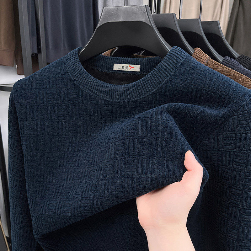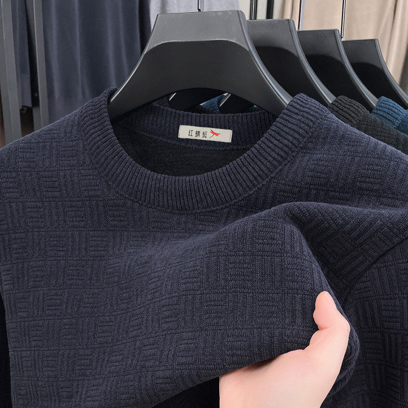 红蜻蜓男士圆领毛衣加绒加厚秋冬新款休闲保暖爸爸针织打底衫上衣