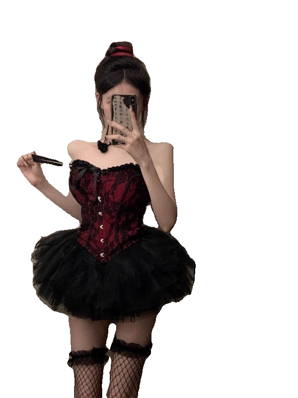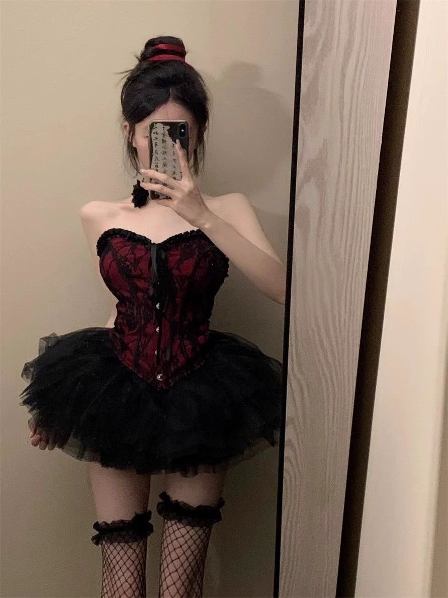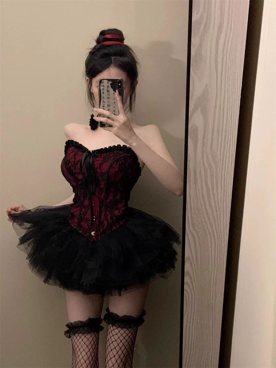 复古宫廷风性感辣妹抹胸上衣夏季新款高腰显瘦蓬蓬短裙子两件套女