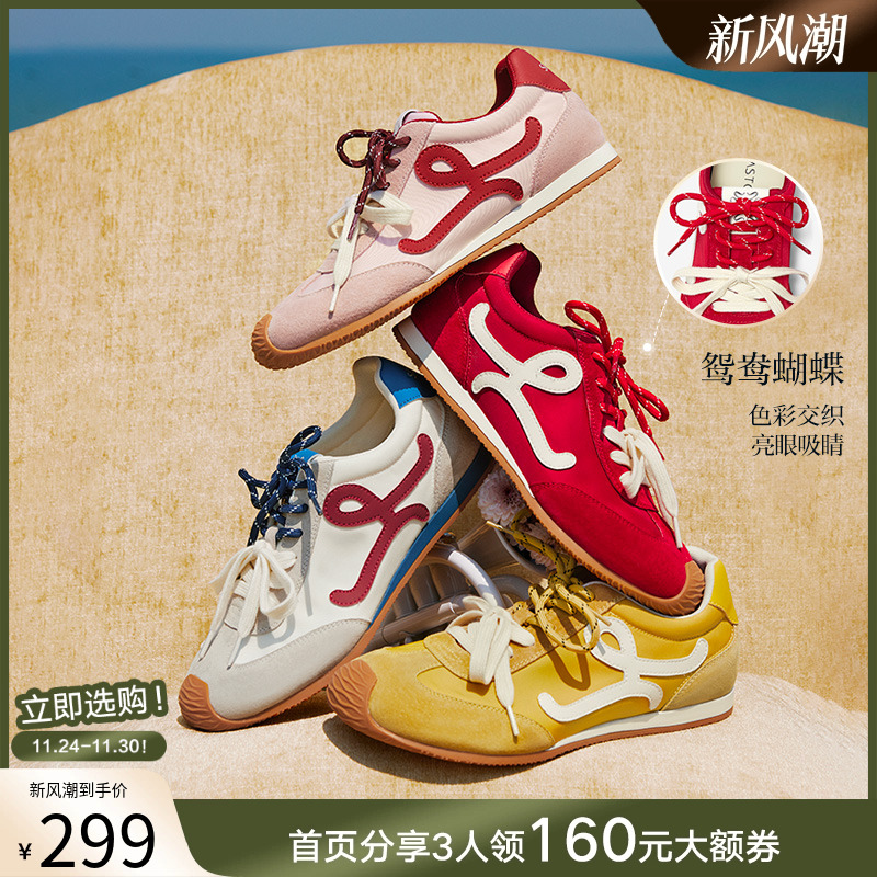 百思图小彩糖25秋新款德训鞋红色运动鞋休闲鞋阿甘鞋女A1825BM5Z