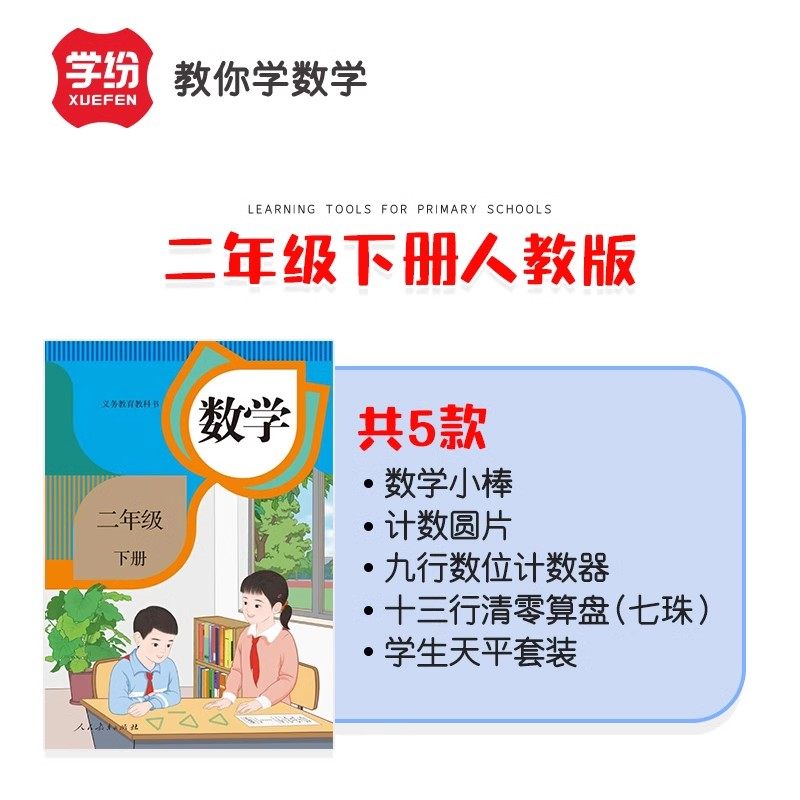 学纷人教版二年级下册教具小学生2年级下册数学教具全套天平砝码套装13档7珠算盘9档计数器100根小棒圆片