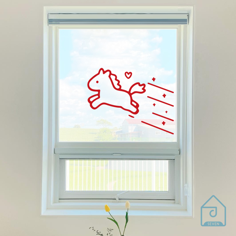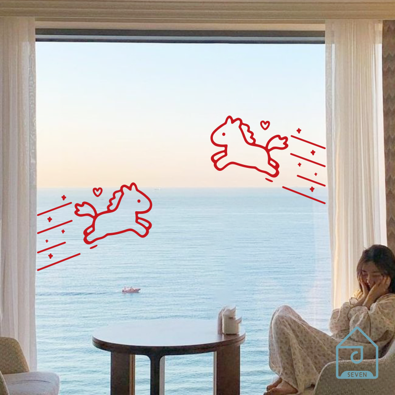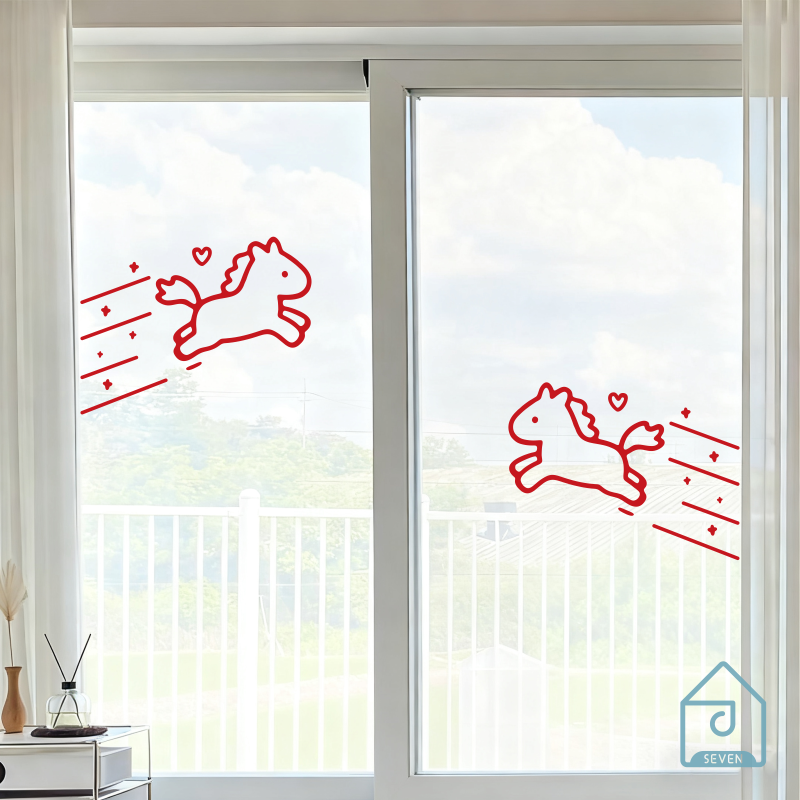马年可爱图案新春节日店铺橱窗户玻璃门防撞阳台厨房背景装饰贴纸