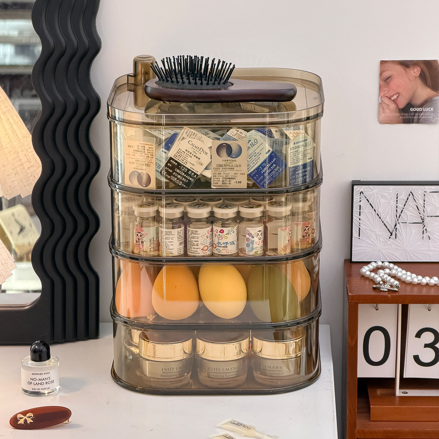 粉扑收纳盒防尘桌面旋转气垫美妆蛋置物架次抛精华小样香水整理盒