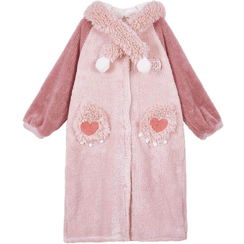 睡衣女冬珊瑚绒睡裙冬睡衣冬款睡袍女冬长款毛绒浴衣家居服加厚D