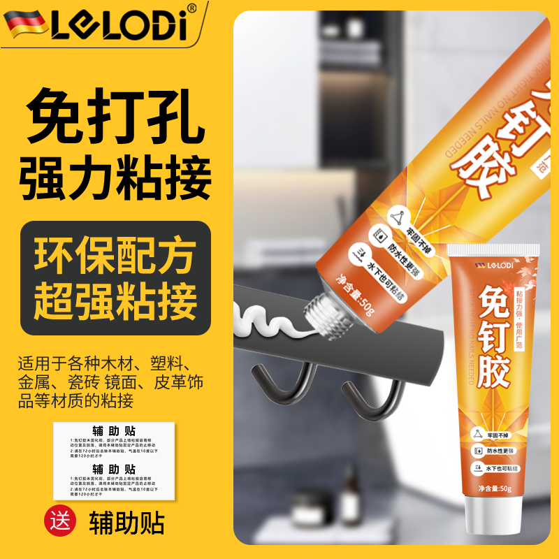 LELODI免钉胶高粘度粘墙面金属墙壁镜子瓷砖置物架防水万能免钉胶