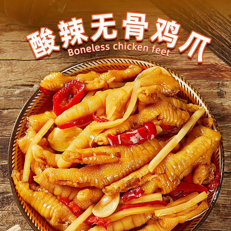 柠檬酸辣笋丝脱骨凤爪无骨鸡爪休闲零食≥50%固形物罐装内含汤汁