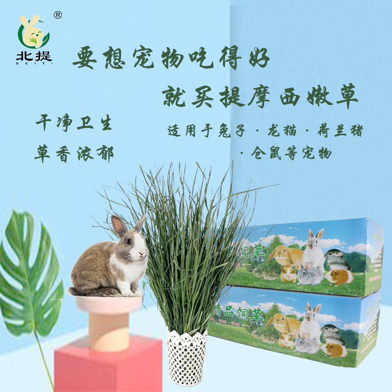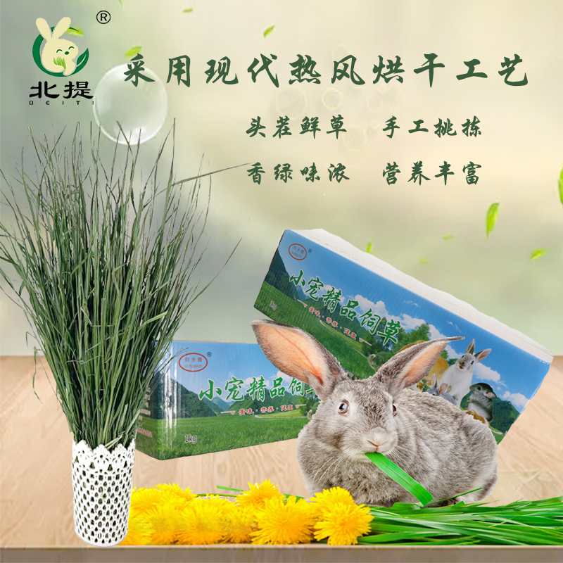 北提烘干提摩西嫩草龙猫口粮牧草兔兔干草饲料箱装1kg提摩西嫩草