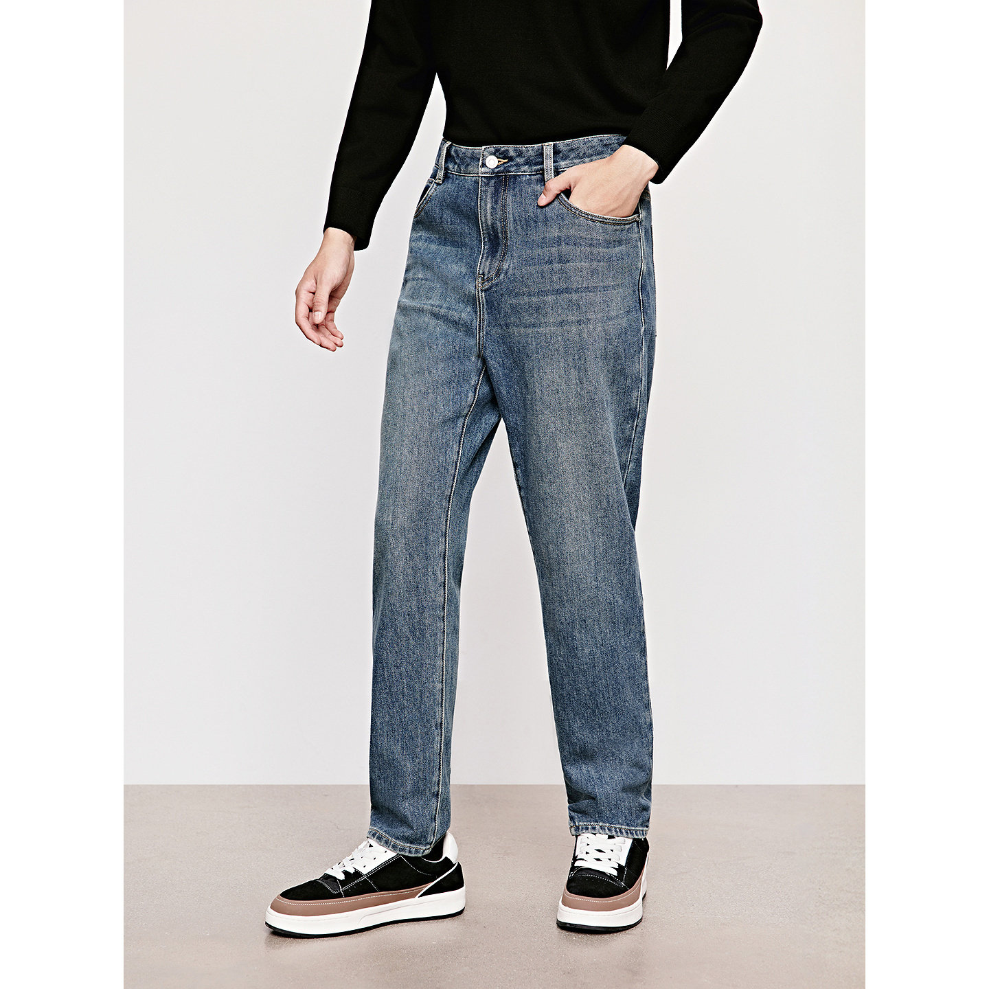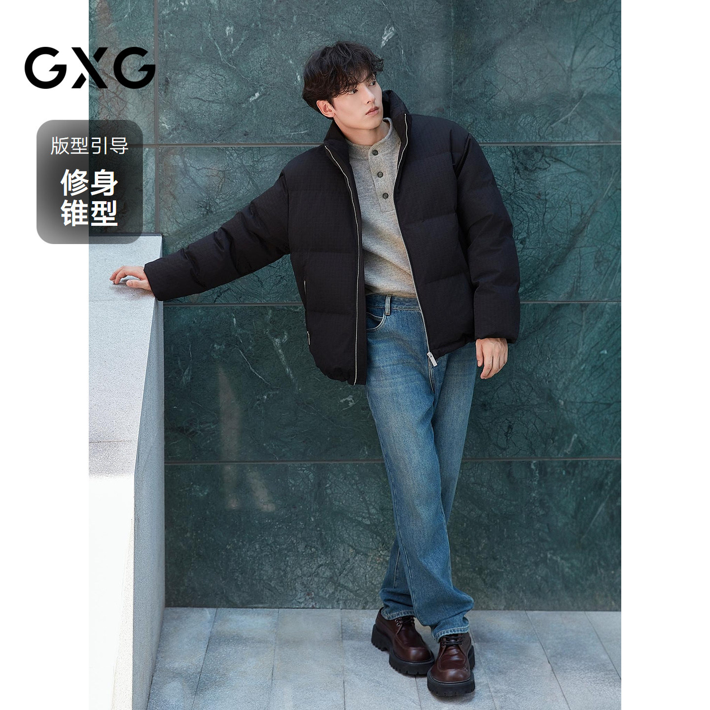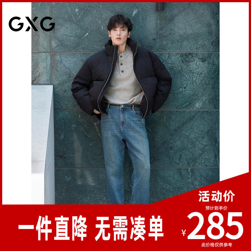 GXG男装 经典水洗修身直筒锥型抓绒保暖牛仔裤 25年冬季新品