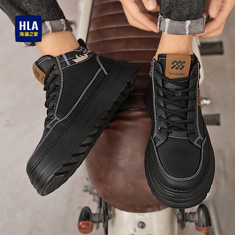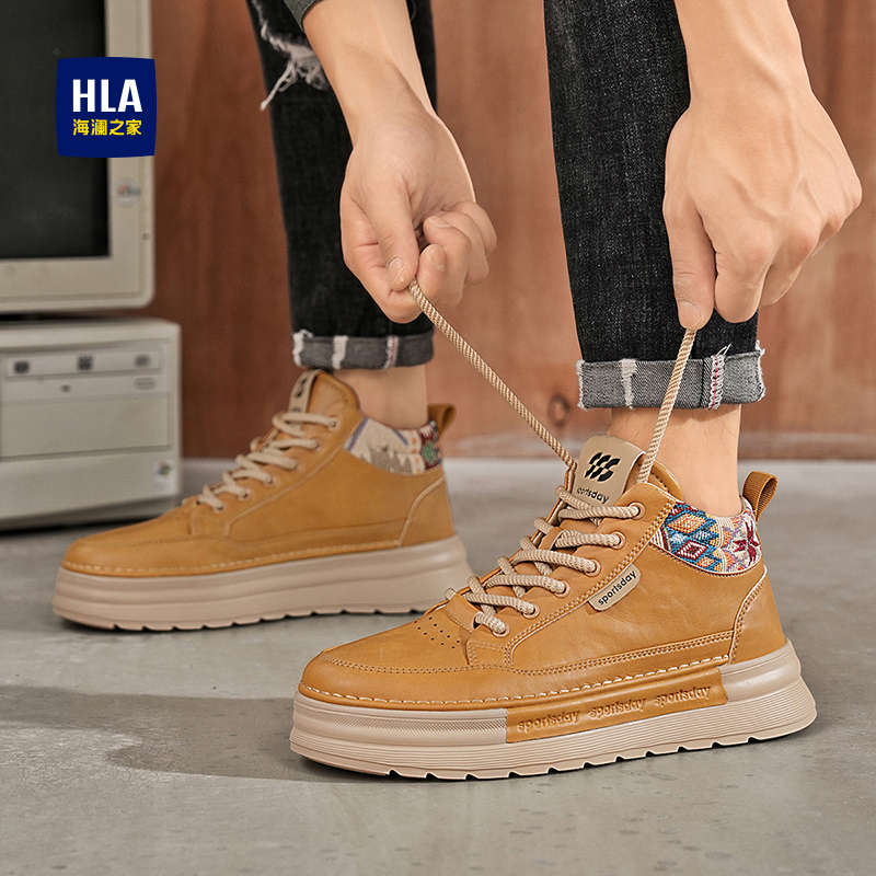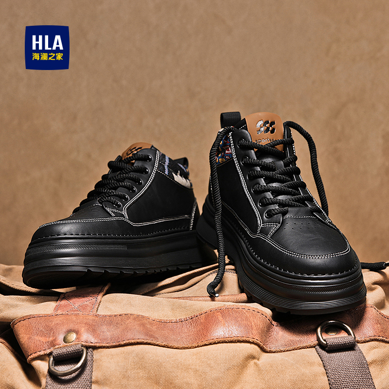 HLA/海澜之家男鞋新款秋冬流行高帮皮面休闲鞋英伦风工装运动鞋子