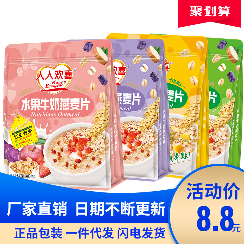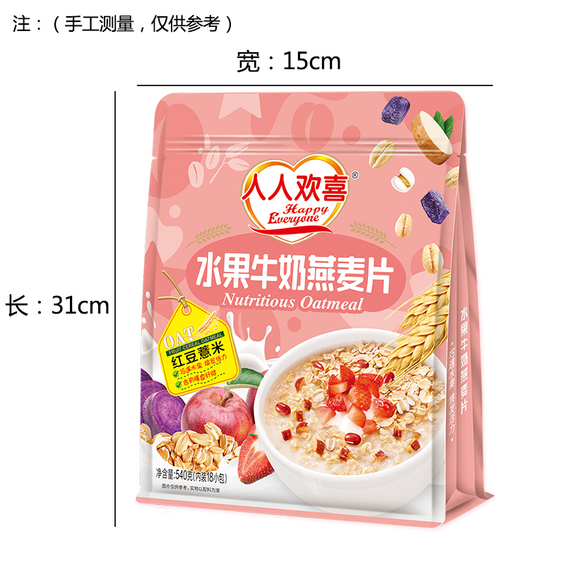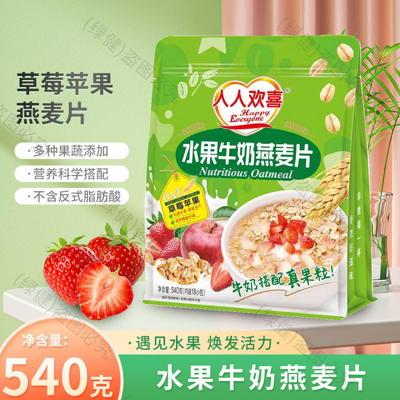 人人欢喜水果麦片540g袋装多种水果味咖啡奶冲饮即食营养早餐食品