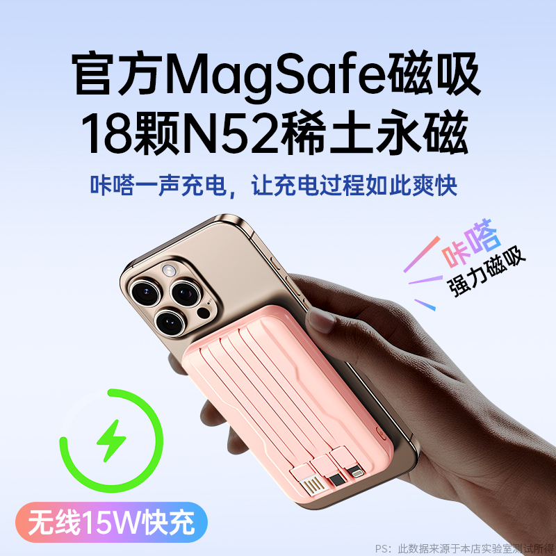 【国家3C认证】20W快充2025新款BS磁吸充电宝自带线大容量超薄小巧便携迷你Magsafe无线官方正品适用苹果华为