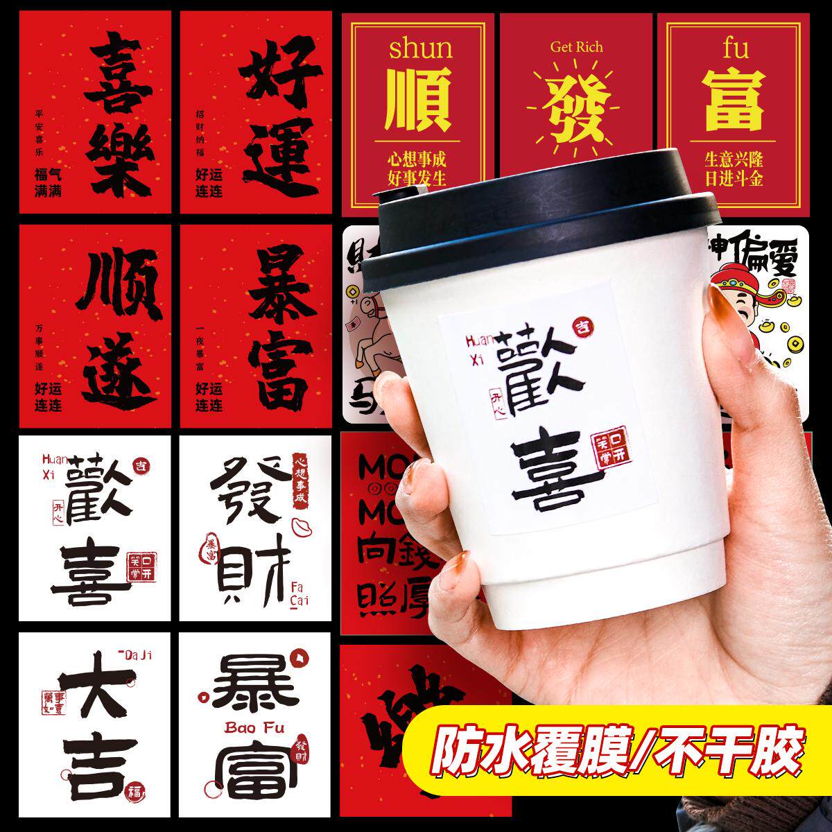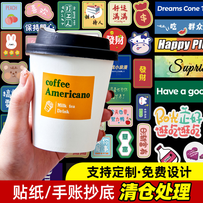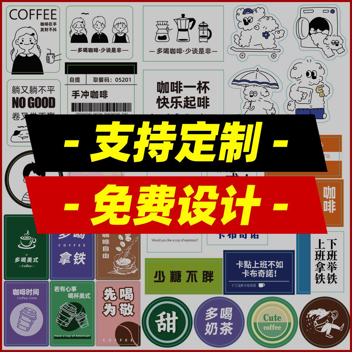 清仓咖啡杯贴纸定制英文logo标签网红防水透明饮料广告奶茶贴订制