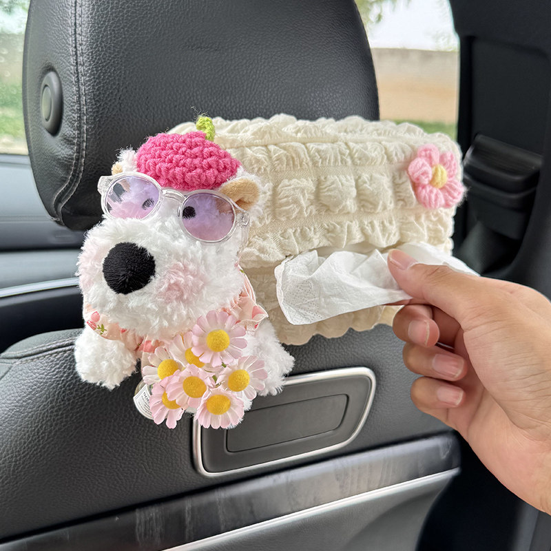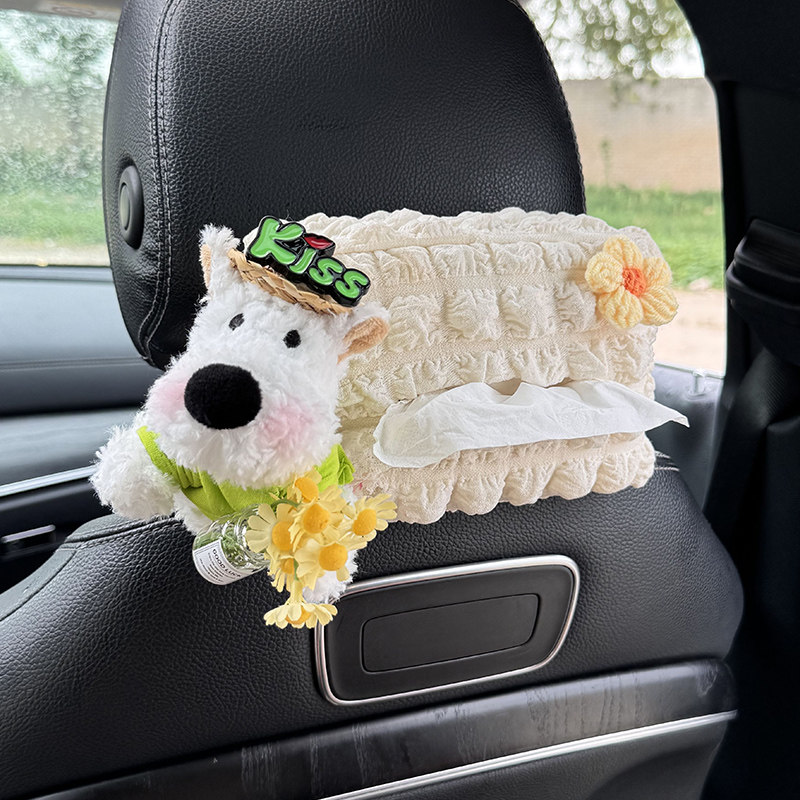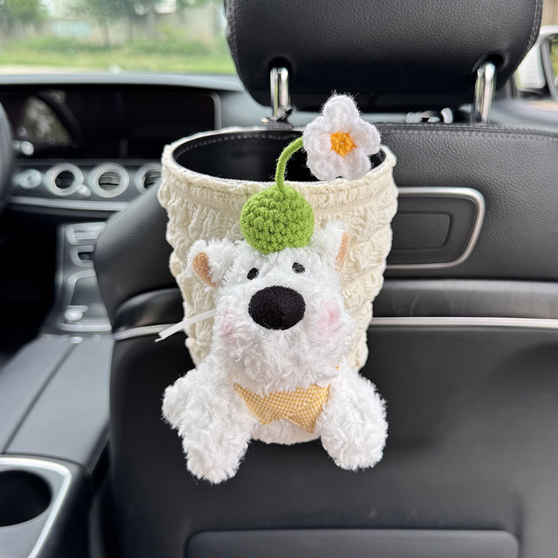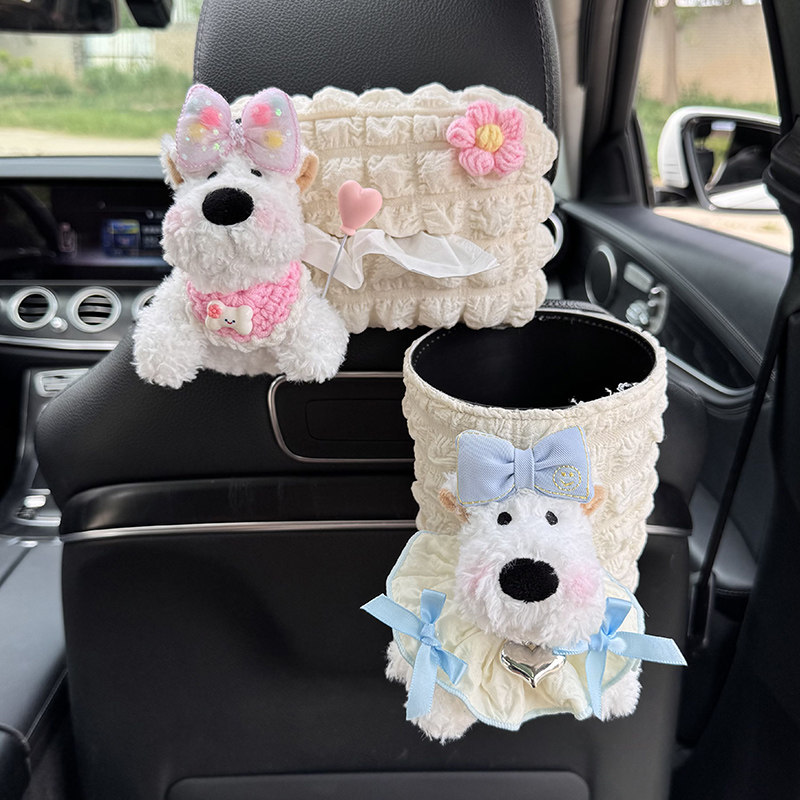 车载纸巾盒卡通西高地公仔2025新款网红高级感车内挂钩垃圾桶套装