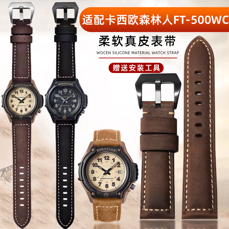 适配卡西欧森林人FT-500WC AW-80V W-89H经典磨砂复古真皮手表带