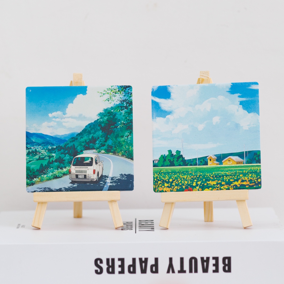 ins风小清新学生桌面装饰摆台风景迷你油画插画创意摆件家居饰品