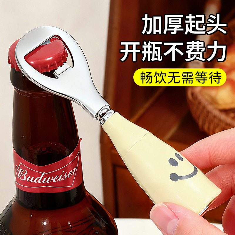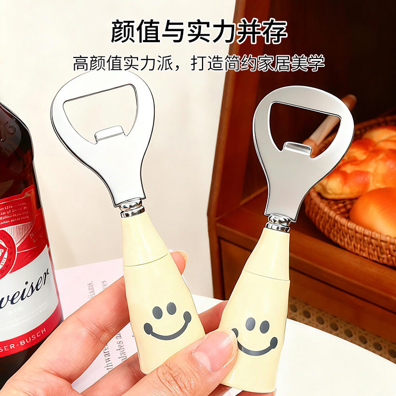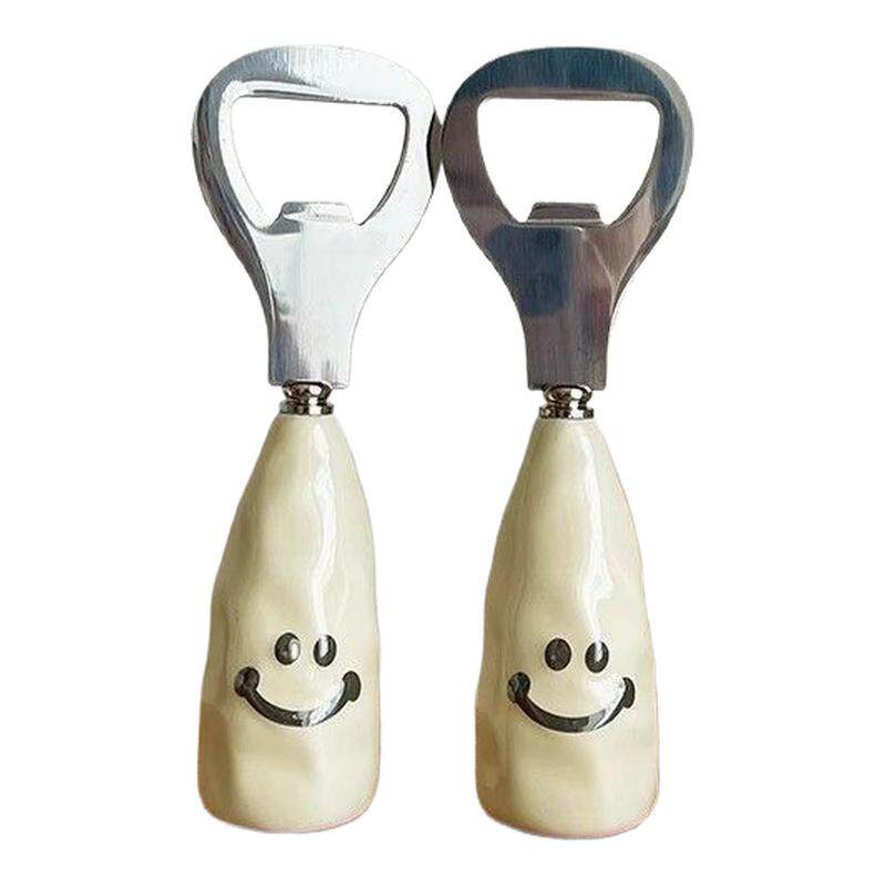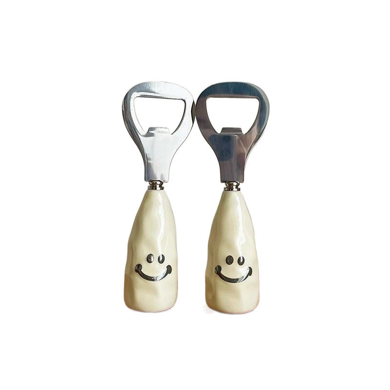 可爱笑脸啤酒开瓶器家用仿陶瓷柄可站立酒瓶起子不锈钢开盖啤酒杯