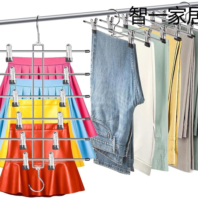 现货速发六层金属折叠带夹子裤架裙架多层家用多功能收纳整理裤架