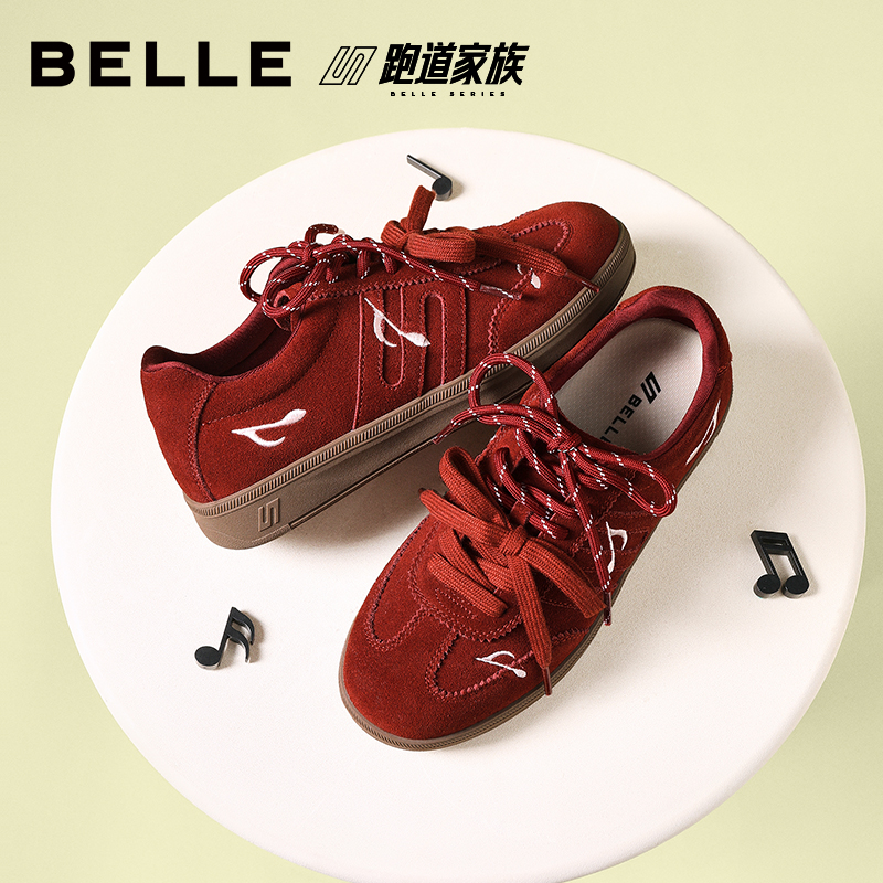 百丽女鞋子跑道厚底德训鞋新款红色新年增高鞋运动休闲鞋B2889CM5