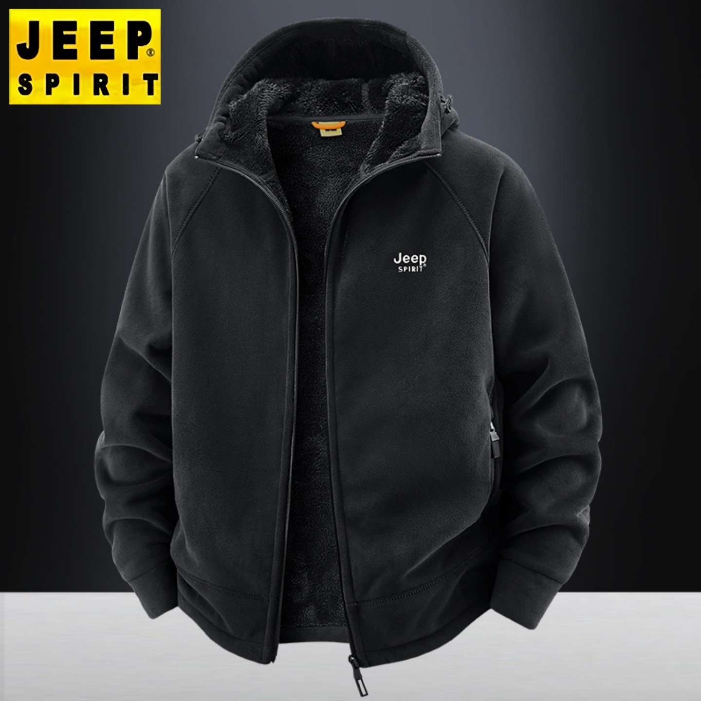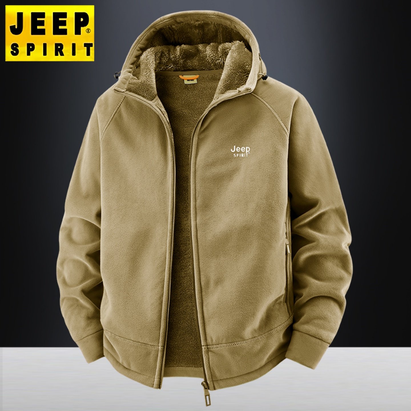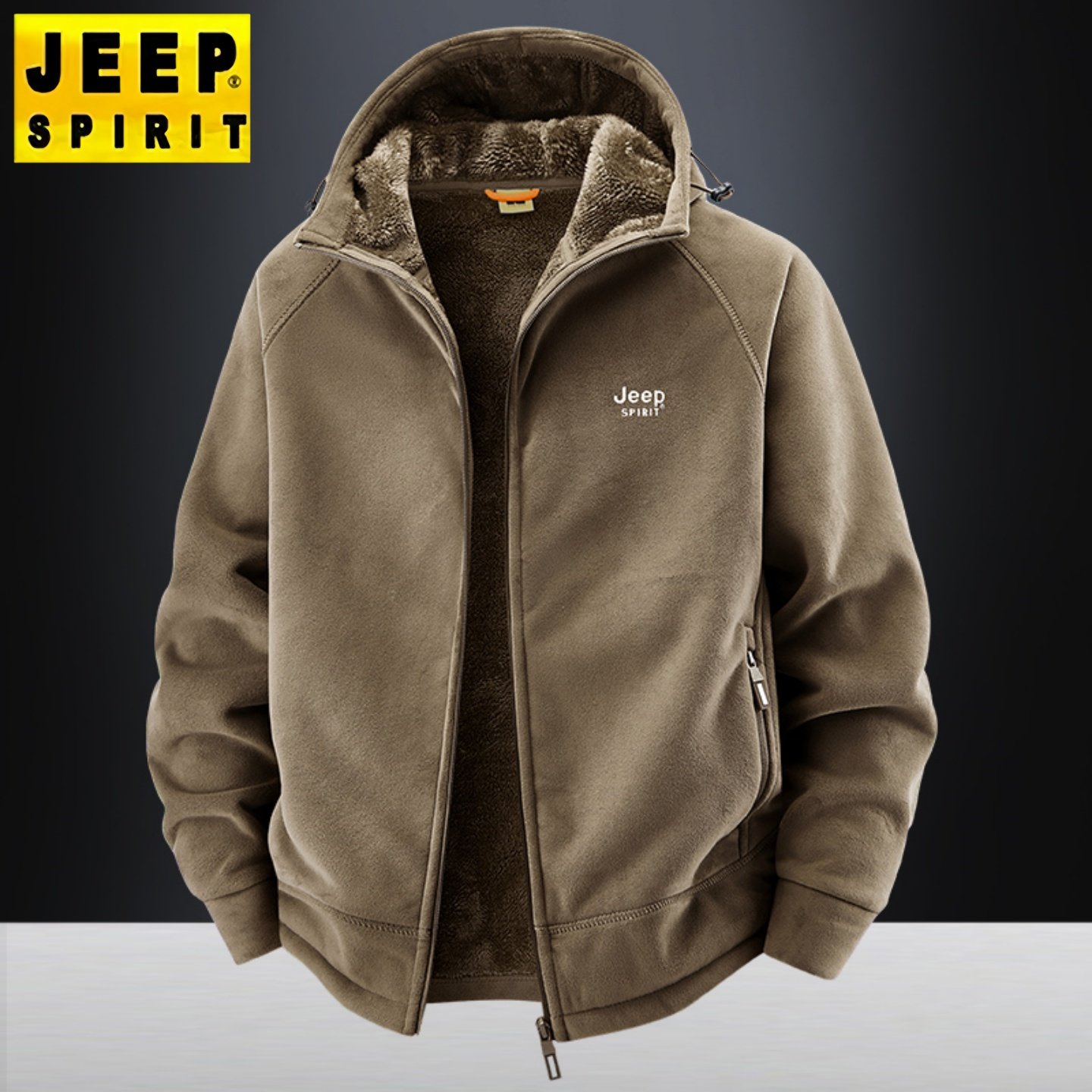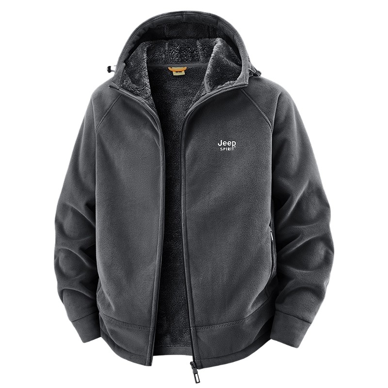 吉普加绒加厚外套男冬季保暖新款中年爸爸连帽休闲运动奥粒绒夹克