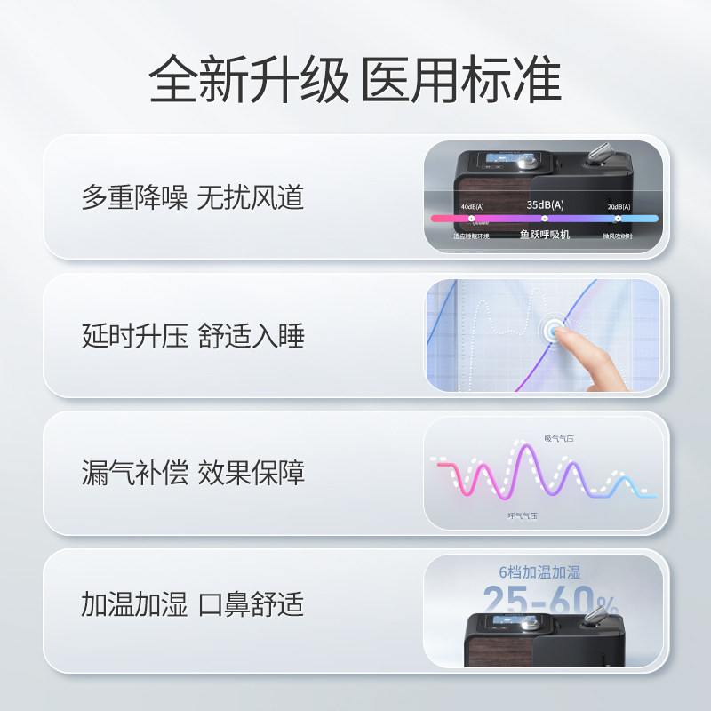 鱼跃呼吸机打呼噜家用双水平呼吸器睡眠暂停综合征止鼾老人YH720S
