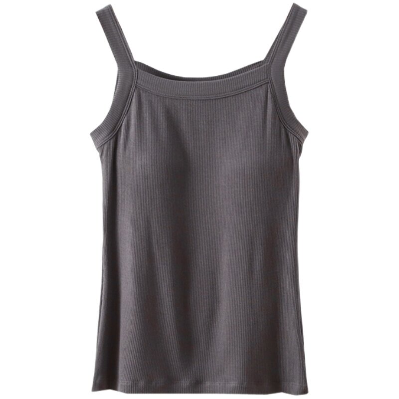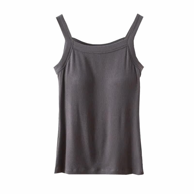 新款螺纹棉带胸垫吊带女士夏季修身薄款内搭打底免文胸外穿小背心