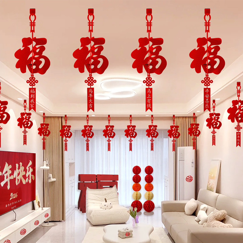 新年春节2026立体福字拉花挂饰商场门店灯笼装饰用品节庆布置挂件