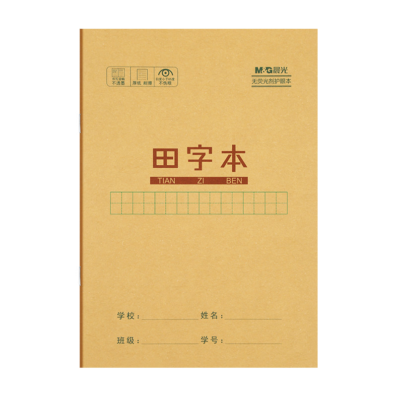 晨光拼音田字本小学生专用一年级作业本拼音本生字数学语文英语本米黄内页牛皮纸加厚25K全国统一标准练习簿
