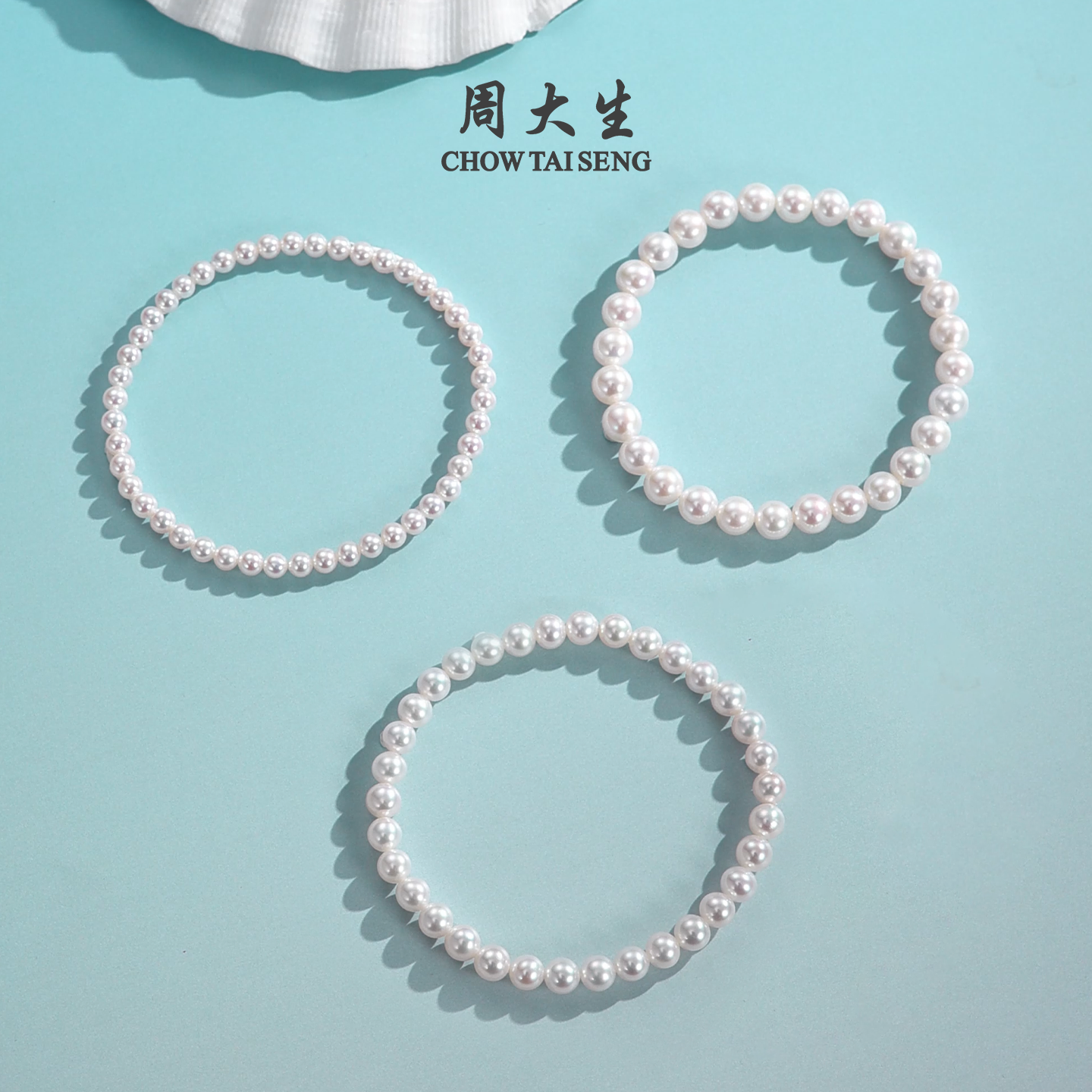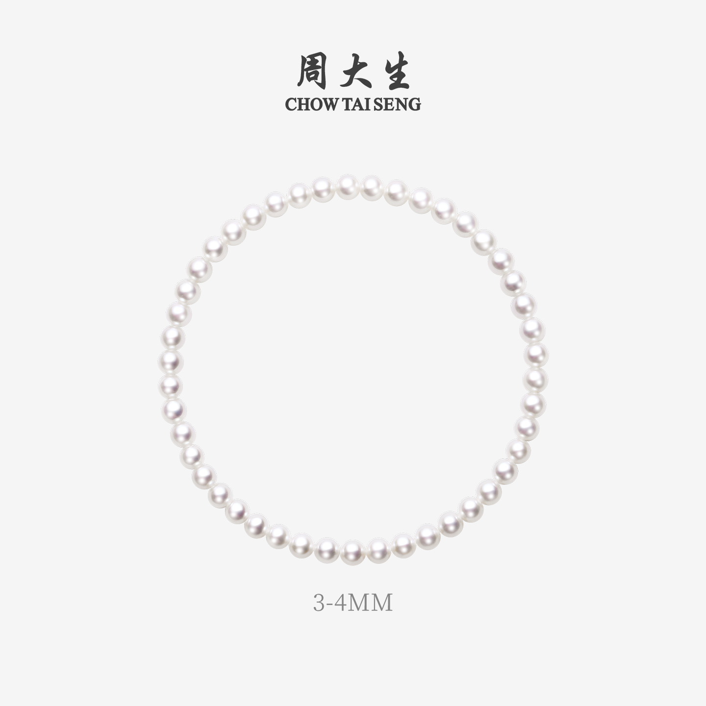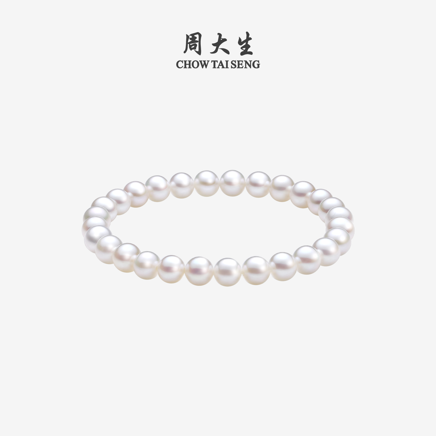 周大生淡水珍珠手链正圆精致百搭简约弹力绳素珠手串手饰新年礼物