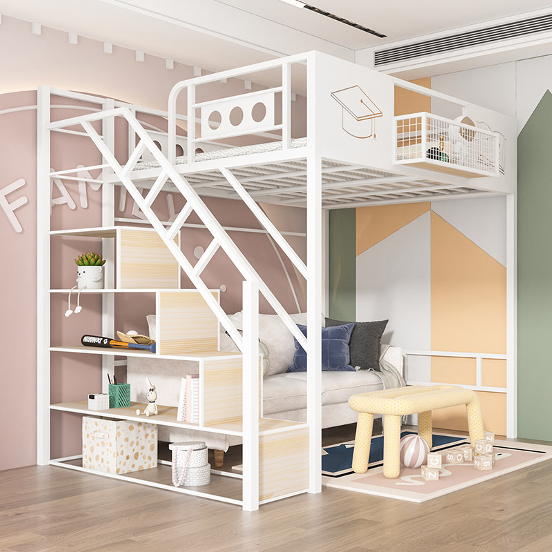 2025新款小户型床上床下桌多功能阁楼床铁艺高架床现代简约省空间