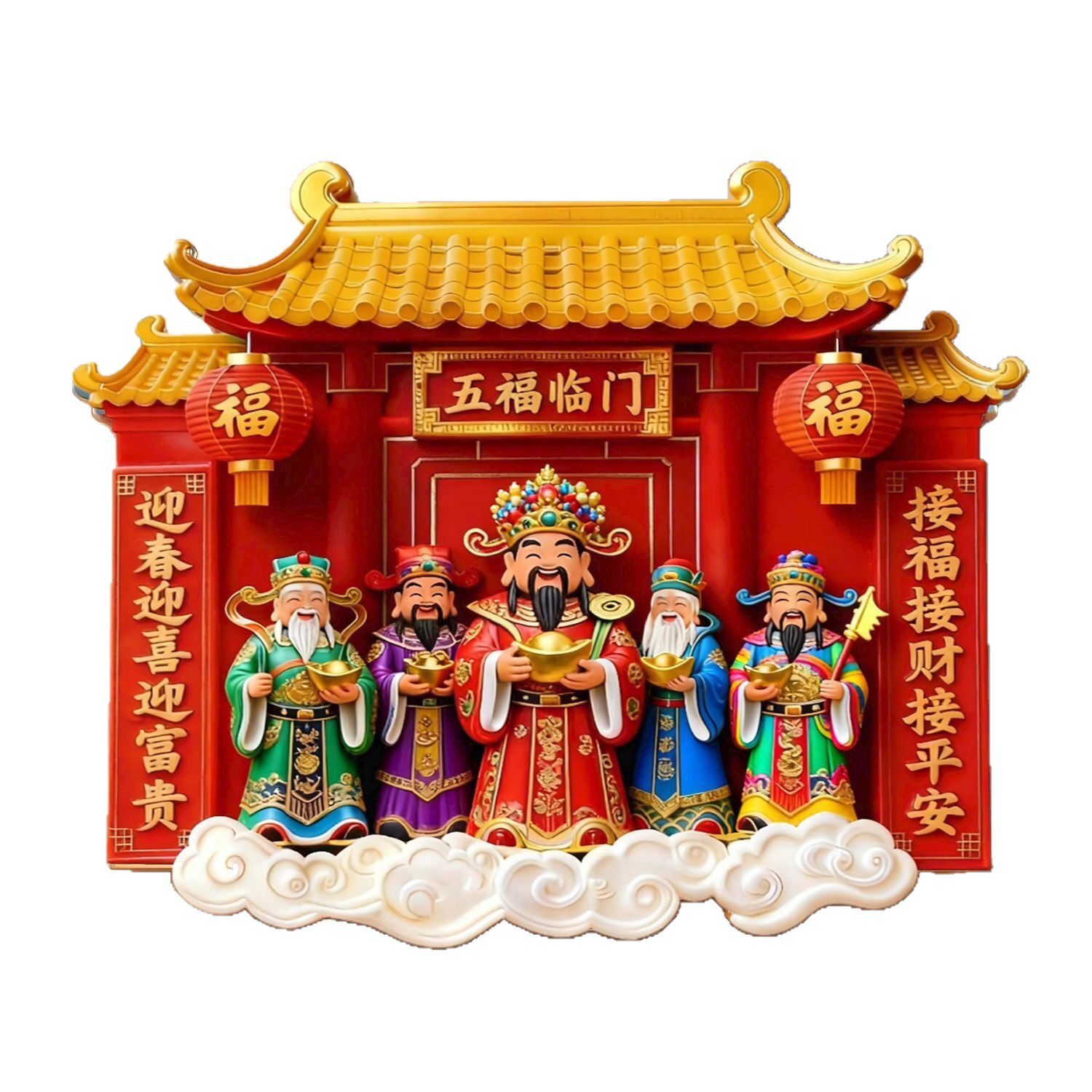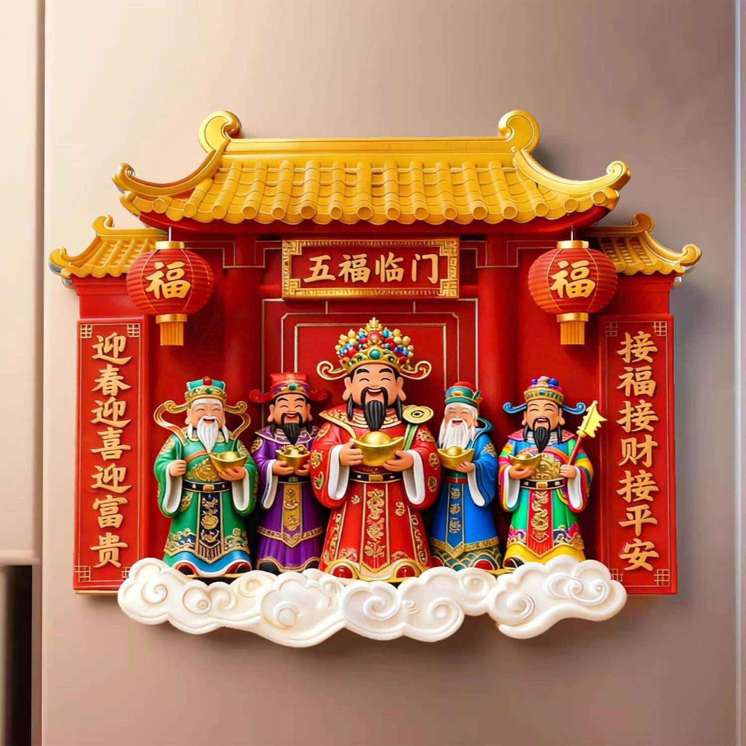 五路财神树脂磁性冰箱贴新年喜庆祈福家居饰品送朋友招财进宝