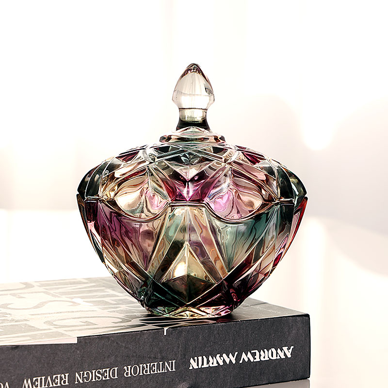 时尚复古彩色首饰盒精致水晶玻璃珠宝手链饰品盒收纳罐桌面摆件