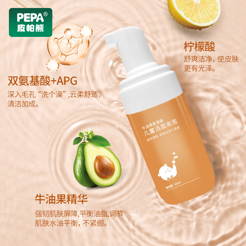 PEPA皮帕熊儿童青少年学生泡泡洁面3-18岁男女童洗面奶氨基酸洗脸