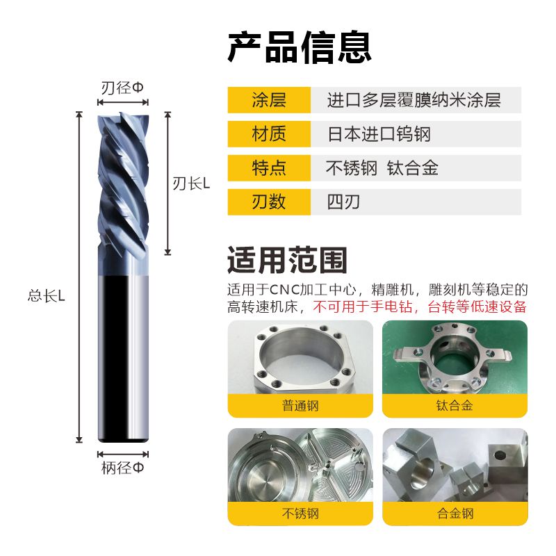 不锈钢专用立铣刀4刃暴力开粗CNC数控刀具动态U槽断削不锈钢铣刀